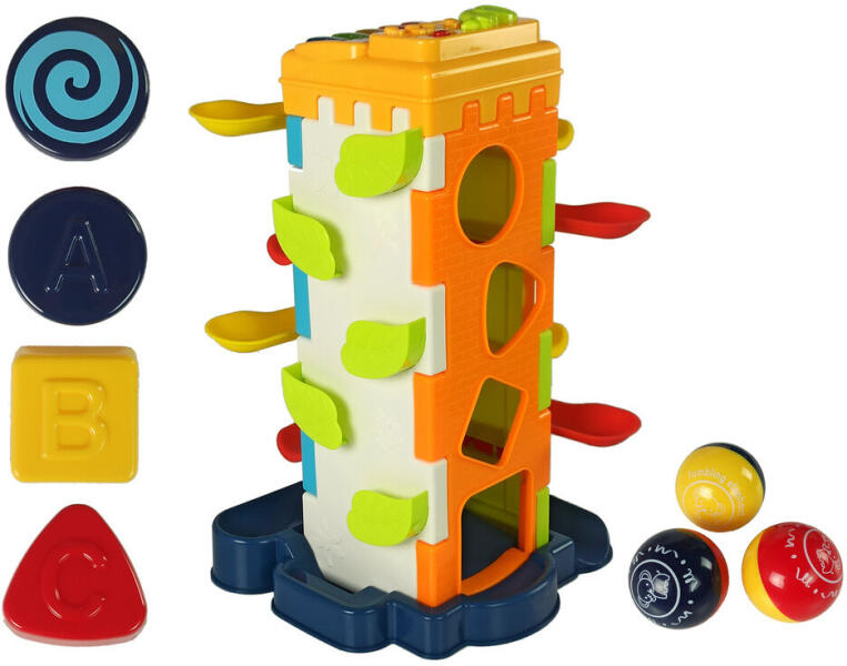 Oktató Játéktorony Golyópályával, Formaválogatóval és Zongorával - 3 éves kortól
