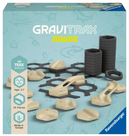 Ra vensburger - GraviTrax JUNIOR kiegészítő készlet 35 db-os (27401) A GraviTrax Junior egy interaktív márvány futórendszer 3 éves kortól. Fiúk és lányok megalkotják saját márvány futóvilágukat, amelyek rugalmasan díszíthetők egyedi tematikus világok kialakításához. Az építés és a szórakozás kombinálva . A GraviTrax Junior igény szerint bővíthető komponensek vagy speciális elemek hozzáadásával. A tematikus dekorációval ellátott készletek lehetővé teszik a gyermekek számára, hogy saját világot alkossanak a tartós szórakozás érdekében.