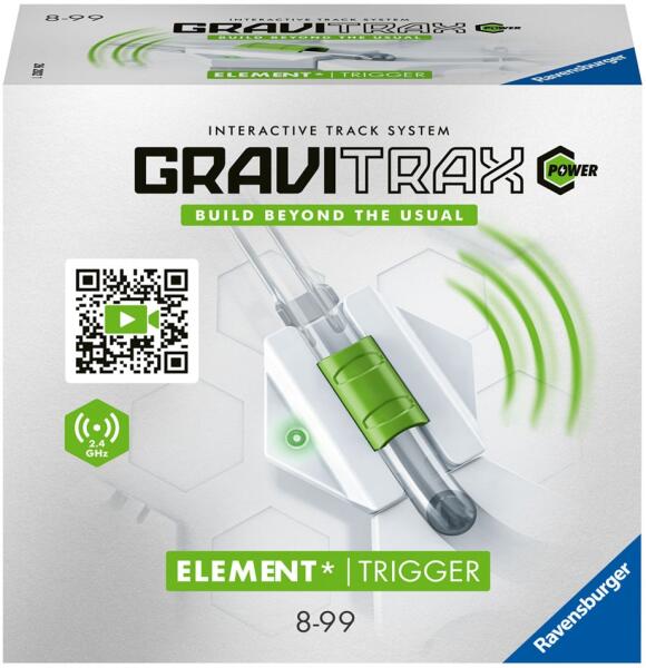 Ravensburger GraviTrax Power - Trigger tartozék készlet Gravitrax Power - Kioldó építőkészlet, Elektromos kioldó, automata tartozékkészlet. Tapasztalja meg a gravitáció erejét! Ezzel a készlettel lenyűgöző, akciódús labdapályákat építhetsz, amelyeken a golyók a végső cél felé gurulnak. A Gravitrax labdapálya rendszer korlátlanul bővíthető kiegészítőkkel és korlátlan építési és játékélményt garantál. A trigger adóként működik, és egy POWER vevővel kombinálva (amely NEM tartozék) új funkciókat indít el az áramkörében. Ez az elem önmagában nem használható. Le kell játszani legalább egy indítókészlettel (az induláshoz elengedhetetlen), valamint legalább egy POWER Gravitrax elektronikus elemmel a következőktől: Switch (elérhető a Switch Starter Setben - RVBR2747); vagy az egyedi fogantyú elemet (RVBR1864). A Gravitrax termékcsalád választásának főbb okai:[INNOVATÍV] A Gravitrax interaktív pályarendszer lehetővé teszi saját versenypályák tervezését, megépítését, valamint a gravitáció, a mágnesesség és a kinetika kísérletezését. [STEM TOY] A 8 év feletti gyermekek oktató és tudományos játékokat tapasztalhatnak meg. [KOMPATIBILIS] Könnyen bővítheti a játék összetettségét – Minden készlet kompatibilis és funkcionális. [AJÁNDÉKÖTLETEK] A Gravitrax ideális ünnepi és születésnapi ajándék kreatív, kíváncsi gyerekeknek és felnőtteknek, akik szeretnek építeni. Tartalma: 1 kioldóelem, 1 használati útmutató. Ehhez a készlethez összesen 1 db AAA elem szükséges, melyet a csomag NEM tartalmaz.